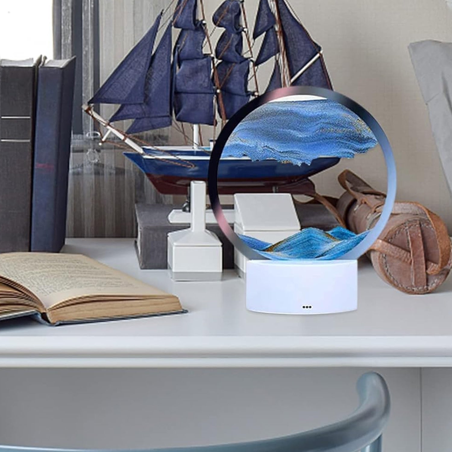 Transform your space with the calming beauty of this 3D Moving Sand Art Picture. Designed with crystal-clear round glass, premium flowing sand, and a colorful LED-lit base, this desktop art piece creates stunning deep-sea-inspired landscapes every time the sand gently shifts. Perfect for relieving stress, enhancing mood, and decorating any home or office space.