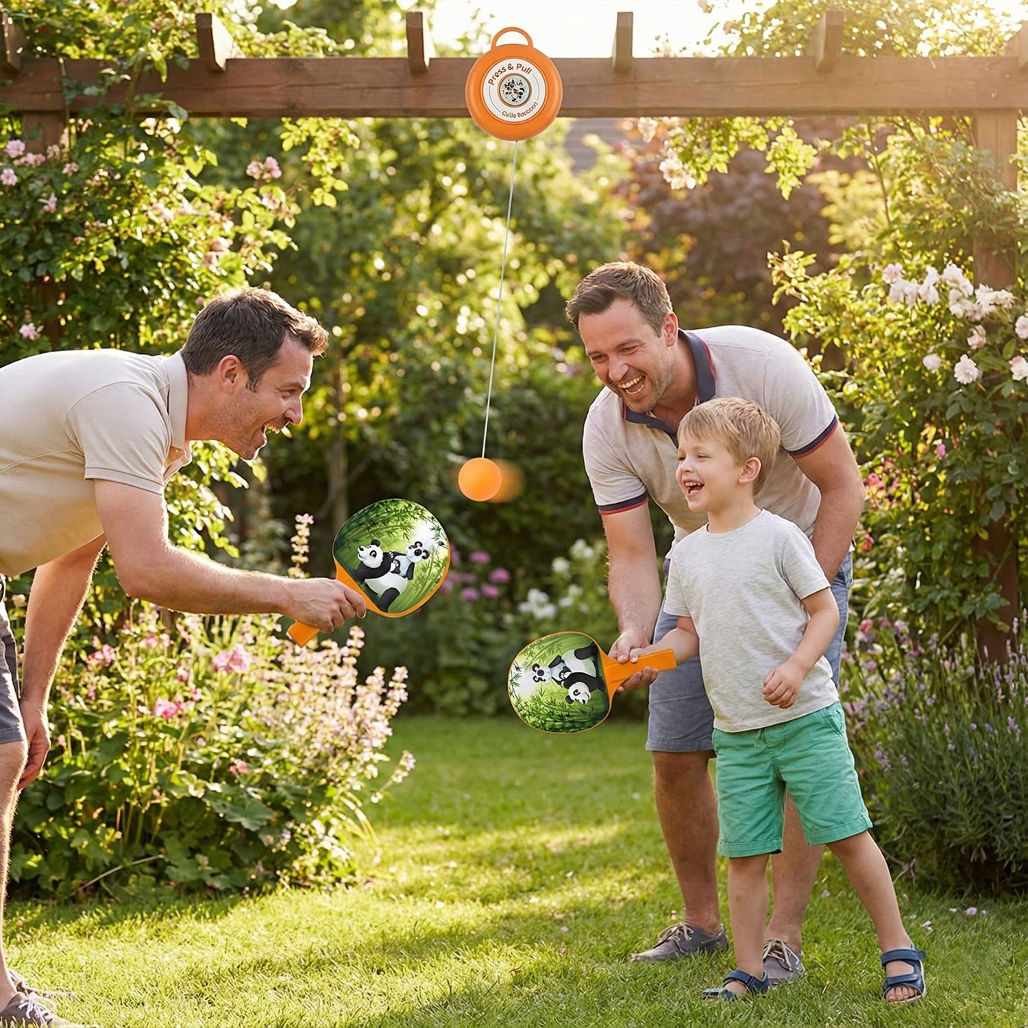 Fun Indoor Ping Pong Trainer | Press & Pull System | 2 Paddles + 3 Balls